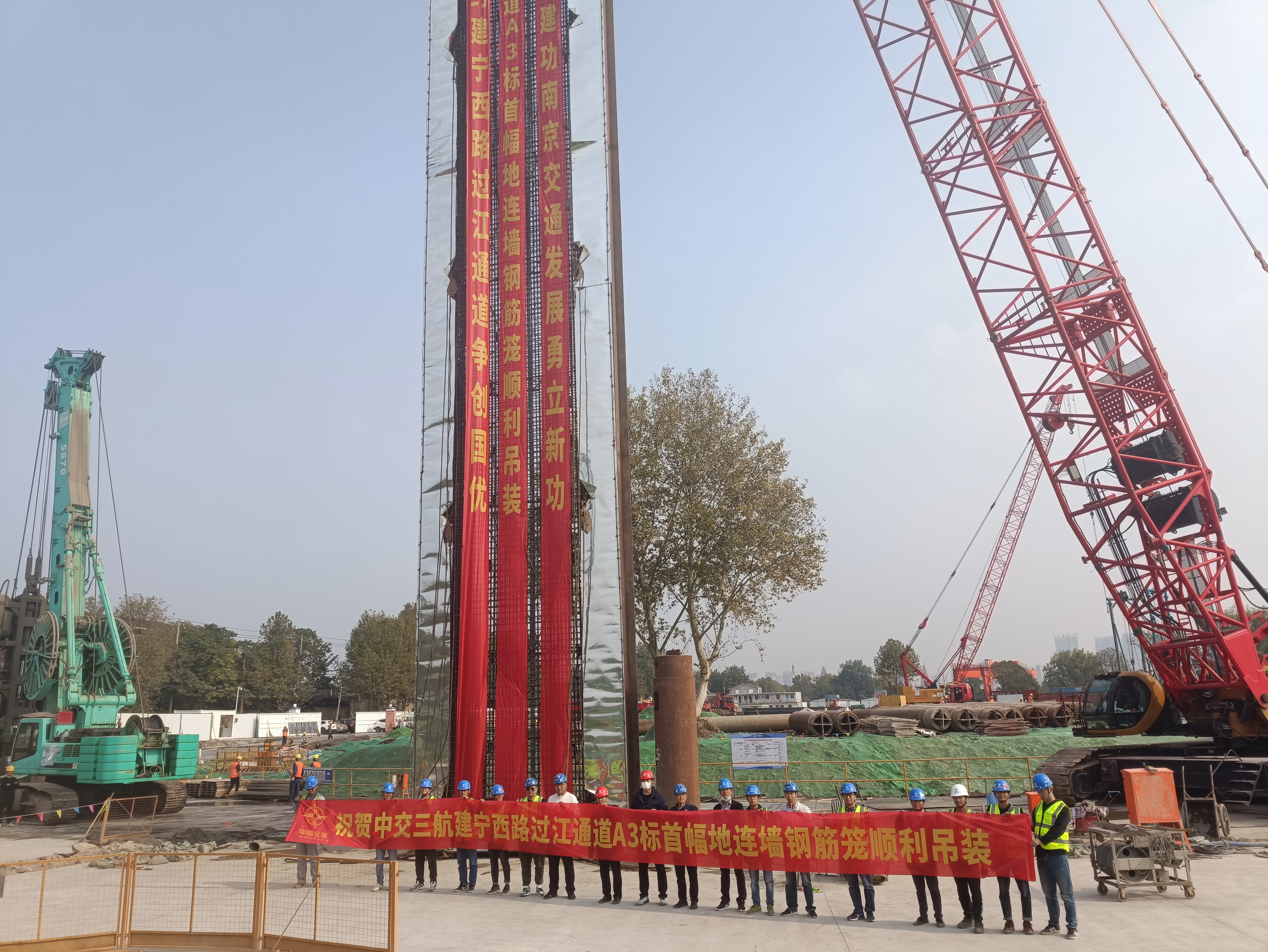 10月27日,建宁西路过江通道横江大道互通首幅地下连续墙钢筋笼成功吊装入槽,并完成混凝土浇筑。