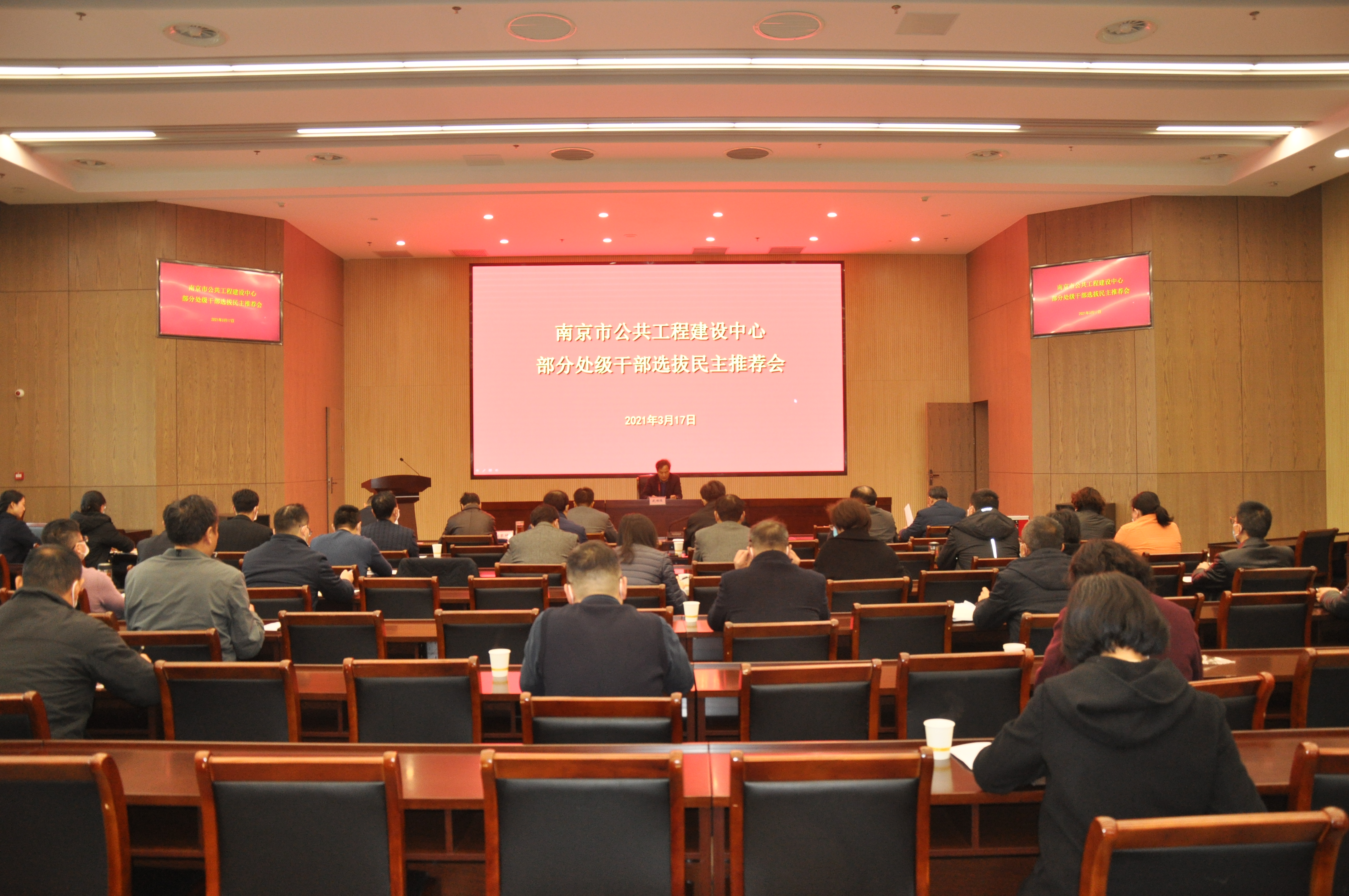 3月17日下午,市公建中心召开会议,对部分处级干部选拔进行民主推荐。中心全体领导、所有处级干部参加会议。中心党组书记、主任武焕陵同志主持会议并强调了民主推荐工作要求。