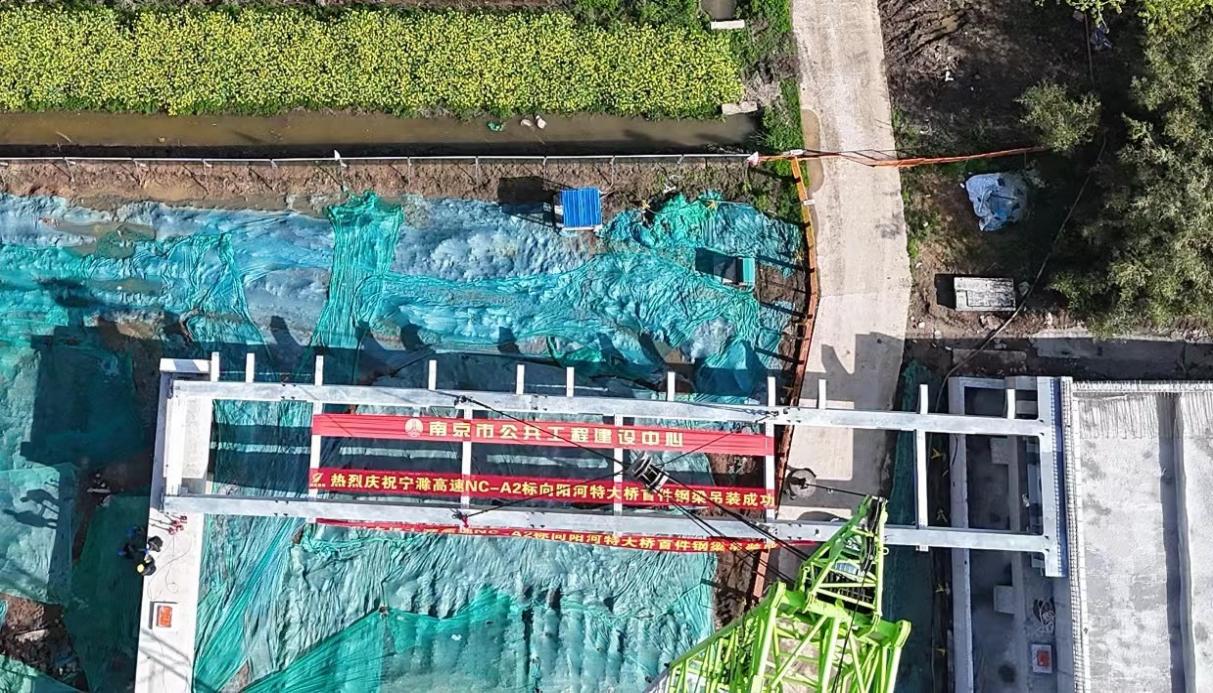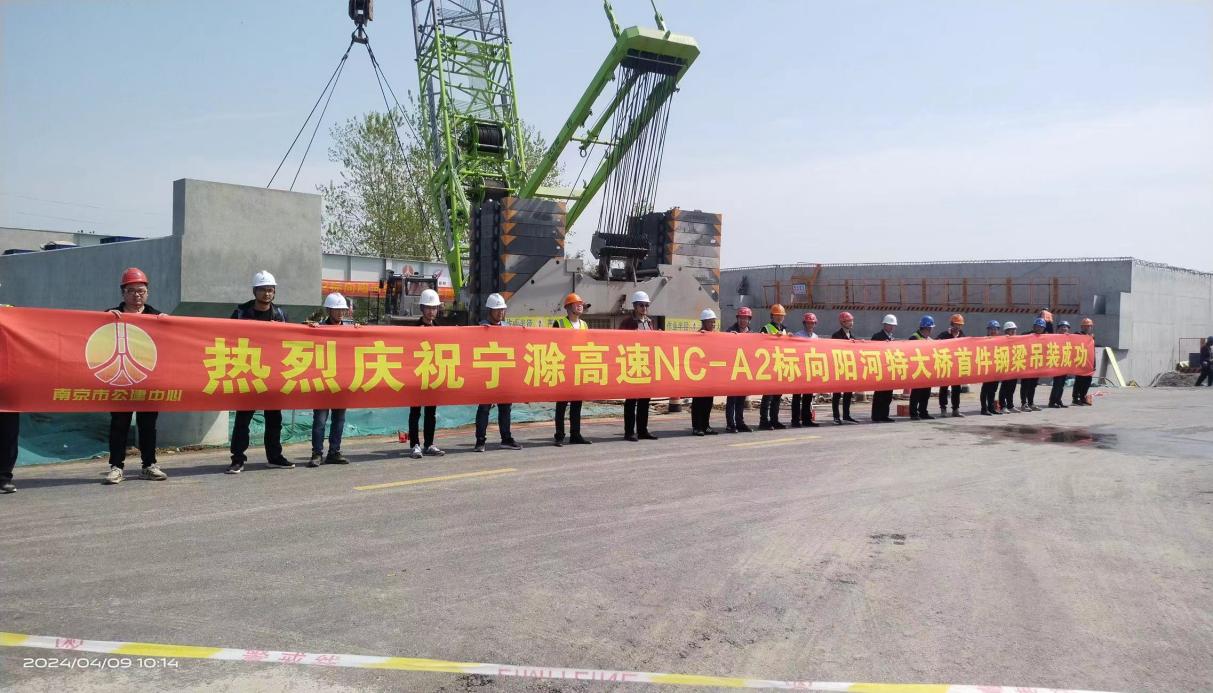 宁滁高速项目向阳河特大桥首节钢梁吊装顺利完工