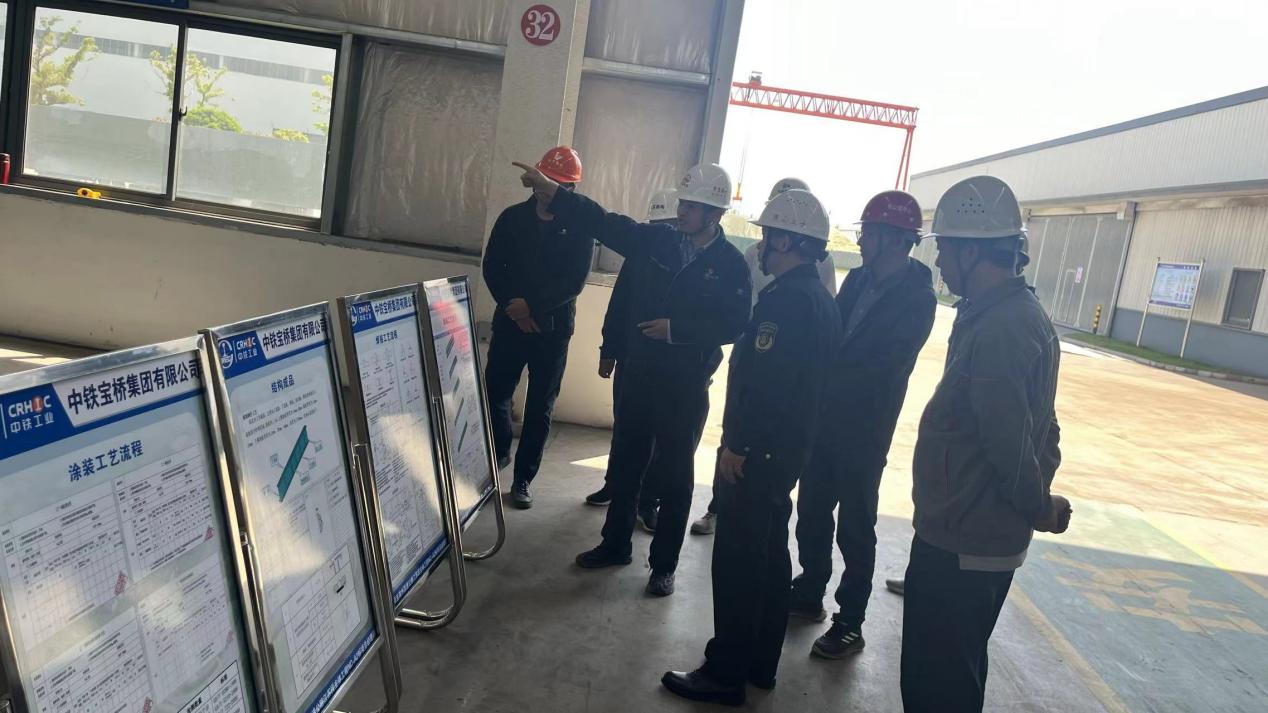 随后前往钢结构加工车间,检查钢梁节段组拼、钢梁焊接和打磨及钢梁喷砂和涂装工艺。