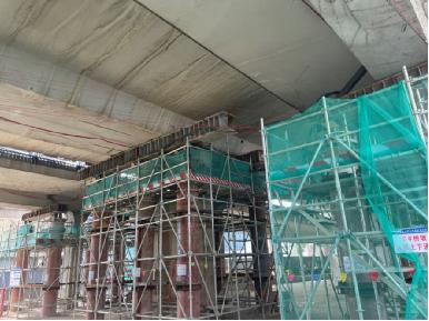 大桥南路高架桥桩基托换第一次受力体系转换完成标志着项目施工已不受高架桥的影响,进入全力推进阶段。