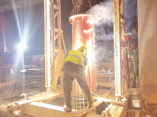 桩基托换工程因受到桥梁高度限制,部分施工工艺需进行优化,开工前中铁上海局运用BIM技术进行建模模拟,优化施工组织,先后克服入岩钻孔灌注桩低净空深砂层施工、大体积混凝土低净空浇筑施工等难题,顺利完成托换前期准备工作。