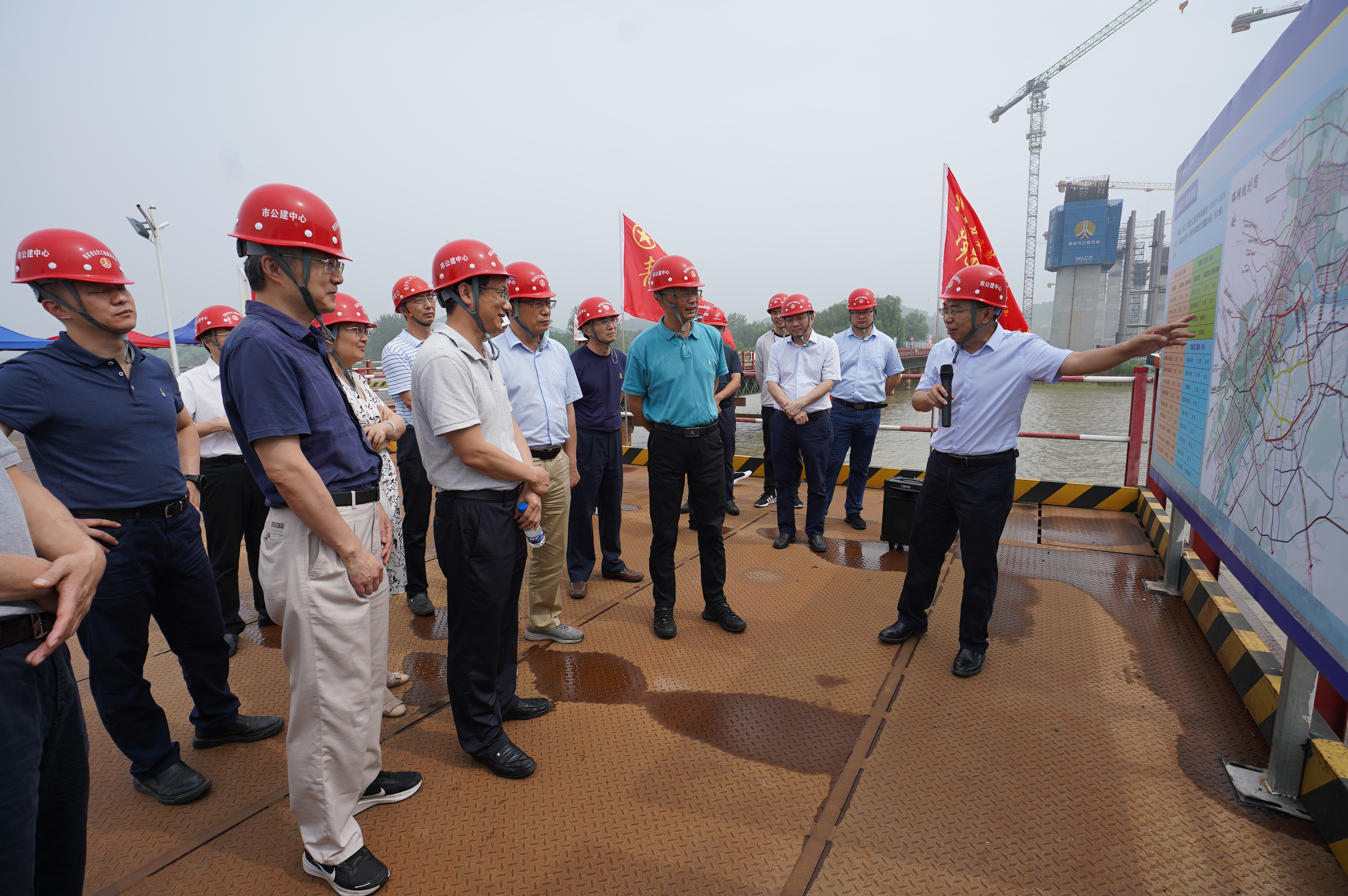 7月6日下午,省交通运输厅副厅长丁峰带队到南京市公共工程建设中心开展2021年度江苏交通品质工程样板建设(南京地区)专题调研,省交通运输厅副巡视员姜竹生,市交通运输局副局长罗睿,省交通运输厅建管处、市交通运输局建管处和市综合执法局等部门负责同志,南京市公共工程建设中心党组书记、主任武焕陵,副主任、总工程师章登精,中心相关处室负责人及仙新路长江大桥各参建单位代表出席了活动。