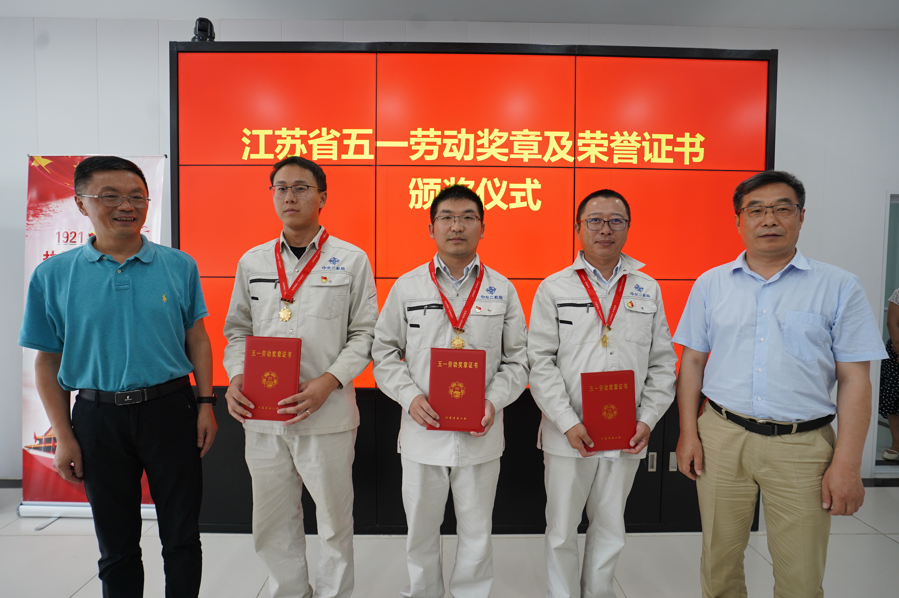 会议期间,与会领导察看了仙新路长江大桥南塔、南锚施工现场,章登精介绍现场相关建设情况。丁峰、姜竹生等领导代表省交通运输厅向参与南京长江五桥建设的江苏省五一劳动奖章获得者颁发了奖章及荣誉证书。(质安处、桥隧二处)