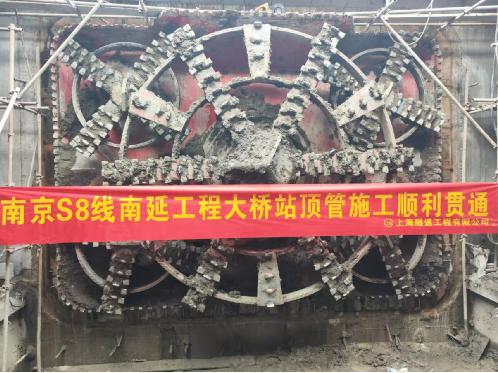随着混凝土块的破裂声,一台7m×5m矩形顶管机破壳而出。2022年4月4日凌晨4:30分,地铁S8线南延工程长江大桥北站1号出入口顶管顺利接收,南京长江大桥双曲拱桥和桥头工字堡安然无恙。也标志着地铁S8项目土建工程基本完成。