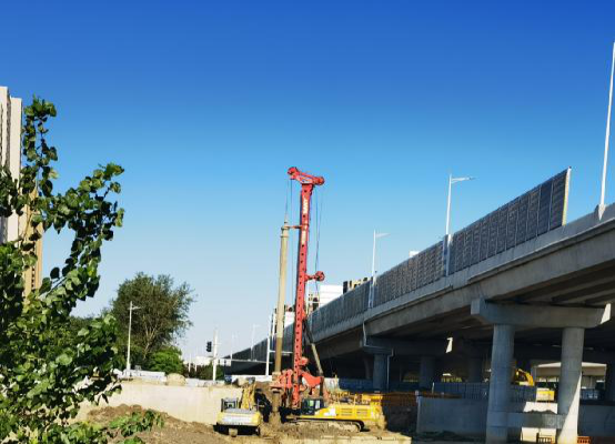 项目于2024年9月19日正式开工建设,计划于2025年6月底前完工。为保证周边居民出行安全及减少对周边居民的打扰,本项目施工现场采用全封闭围挡,进出道路使用砼硬化。该工程桥梁桩基共计22根,考虑到临近居民区的特点,市公建中心要求桩基施工时选择了成本更高的旋挖钻,并将作业时间控制在8:00-20:00。在参建各方的共同努力下,桩基工程已于近期全部完成,为下一步下部结构的施工创造了条件。