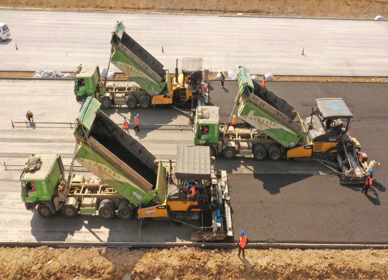 宁滁路面施工现场机器轰鸣声此起彼伏,各种施工设备秩序井然,运输车辆和摊铺机配合默契、压路机在刚铺就的水稳层上来回穿梭。市公建中心宁滁现场指挥部科学调度、抢抓“黄金窗口期”,水稳摊铺作业进入冲刺阶段,截止目前已完成总量的87%。