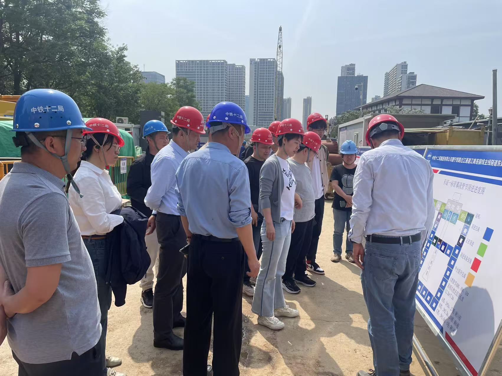 4月23日,南京市建设工程造价监督站市政科一行来到建宁西路过江通道江南连接线-主线隧道东延工程施工一标现场,对全国首例矩形管幕施工进行调研并指导工作,市公建中心合约处、建宁西路东延项目指挥部、造价咨询单位、施工单位参加交流座谈。