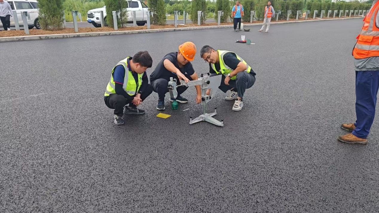 在质量把控环节,指挥部严格执行“首件验收、全程跟踪”制度,根据首件作业后专家会的总结,明确“原材料检验—混合料拌合—现场摊铺—碾压成型”各环节质量标准。原材料管控中,对进场沥青的针入度、延度、软化点等关键指标实行“一车一检、逐项记录”,对集料级配、含泥量及压碎值进行抽样复核,确保所有原材料均符合规范要求,从源头杜绝质量隐患。拌合环节,严格把控混合料配合比,精准控制沥青、石料、矿粉掺配比例,同时实时监测混合料出厂温度,确保上面层混合料温度稳定在170-185℃区间,避免因温度偏差影响路面强度。摊铺作业时,采用多台摊铺机梯队作业,严格控制摊铺速度在2-3米/分钟,确保路面平整度;熨平板提前预热至110℃以上,有效减少混合料温度损失。碾压阶段,投入6台钢轮压路机联合作业,严格遵循“先轻后重、先慢后快”原则,碾压遍数较规范要求增加20%,经现场检测,路面压实度达合格率100%。