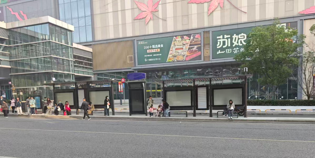 图中所示的是马群客运枢纽旁的马群公交站台,一旁设有商业广场、写字楼区、地铁、城际轨道枢纽和公交站,市民在此办公、居住、购物,因此出行、换乘的需求很大。而往年这里偌大的公交站台上只有一块孤零零的站牌,市民公交出行全靠“熟练度”,刮风下雨时更是有诸多不便。如今,崭新宽敞的候车亭,滚动播报的智能信息屏,给这一公交站点带来了新气象,为广大市民提供了便利。