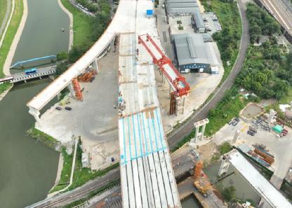 下阶段,将按计划开展第2次跨越永利铁路的施工,即架设C匝道桥预制梁,与先期已顶推跨越江北大道高架桥的钢箱梁对接,实现C匝道贯通;开展第3次跨越永利铁路的施工,实现B匝道贯通,完成该互通一期服务功能的全部主体结构。