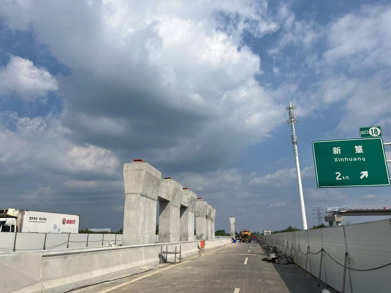 跨G2503绕越高速桥梁施工于5月10日启动,施工阶段存在工期紧、交通组织难度大、安全风险高等特点。宁盐高速公路南京段工程现场指挥部超前谋划,统筹协调,带领NY-NJ1标克服夏季高温作业等诸多困难,施工前双向封闭绕越高速小客车道和客车道,将社会车辆顺利导改至客货车道通行。